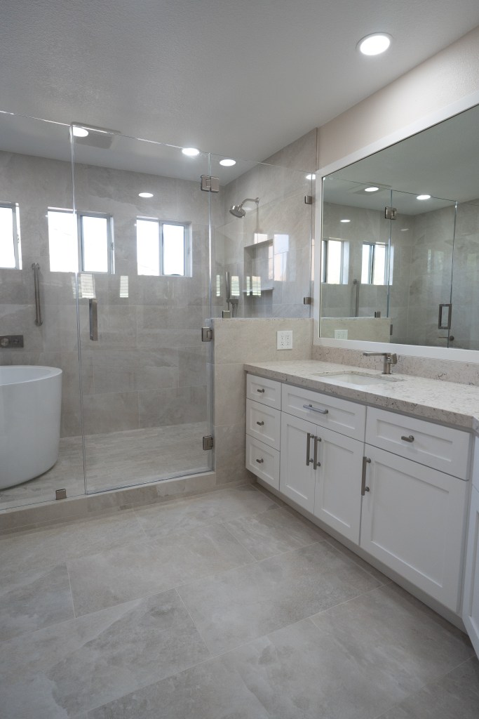 This Project Features a Modern Bathroom Design in Orange County & Remodel. The client was seeking a spa like experience that felt like home away from home.